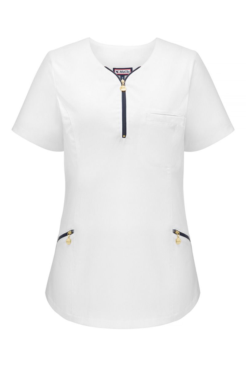 Bluza medyczna damska dekolt na zamek MeClo biała + granat