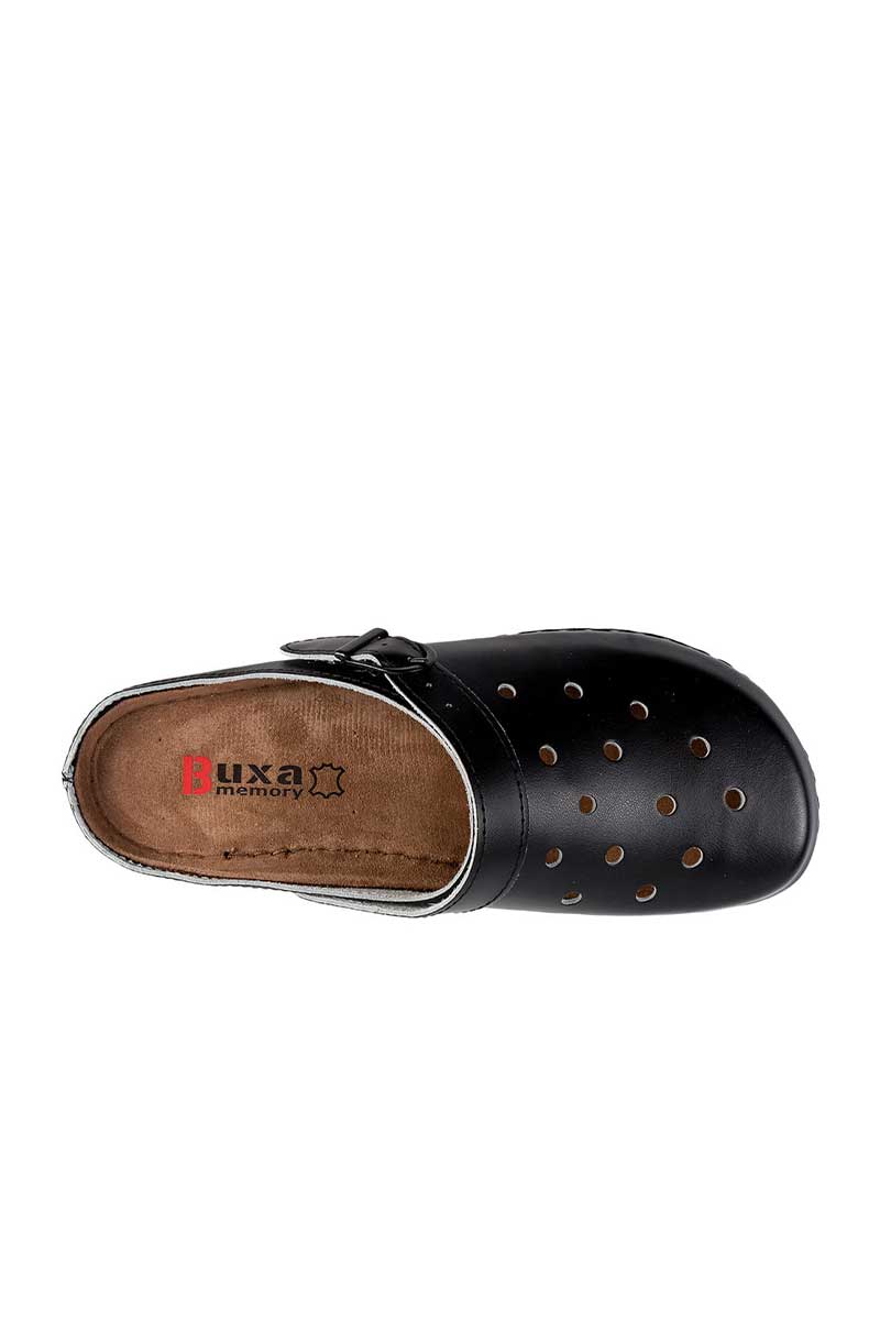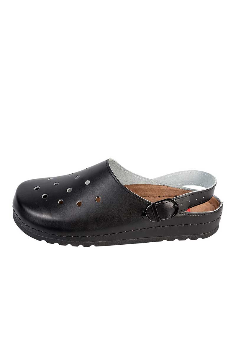 Flip-flops designed for those who spend long hours on the move and expect more from footwear than just “it’s comfortable.” The leather upper allows the feet to breathe, ensuring natural comfort and eliminating issues typical of synthetic materials. The soft MEMORY foam sole gently supports the foot exactly where it’s needed - without the feeling of sinking in. A contoured footbed and wide toe area help maintain proper foot alignment and reduce the risk of discomfort that can easily ruin a day at work. The non-slip rubber outsole provides confident traction even on slippery surfaces, while easy cleaning helps the flip-flops retain a fresh, professional look for longer. This is a model that discreetly takes care of comfort - without compromises and without unnecessary fuss.