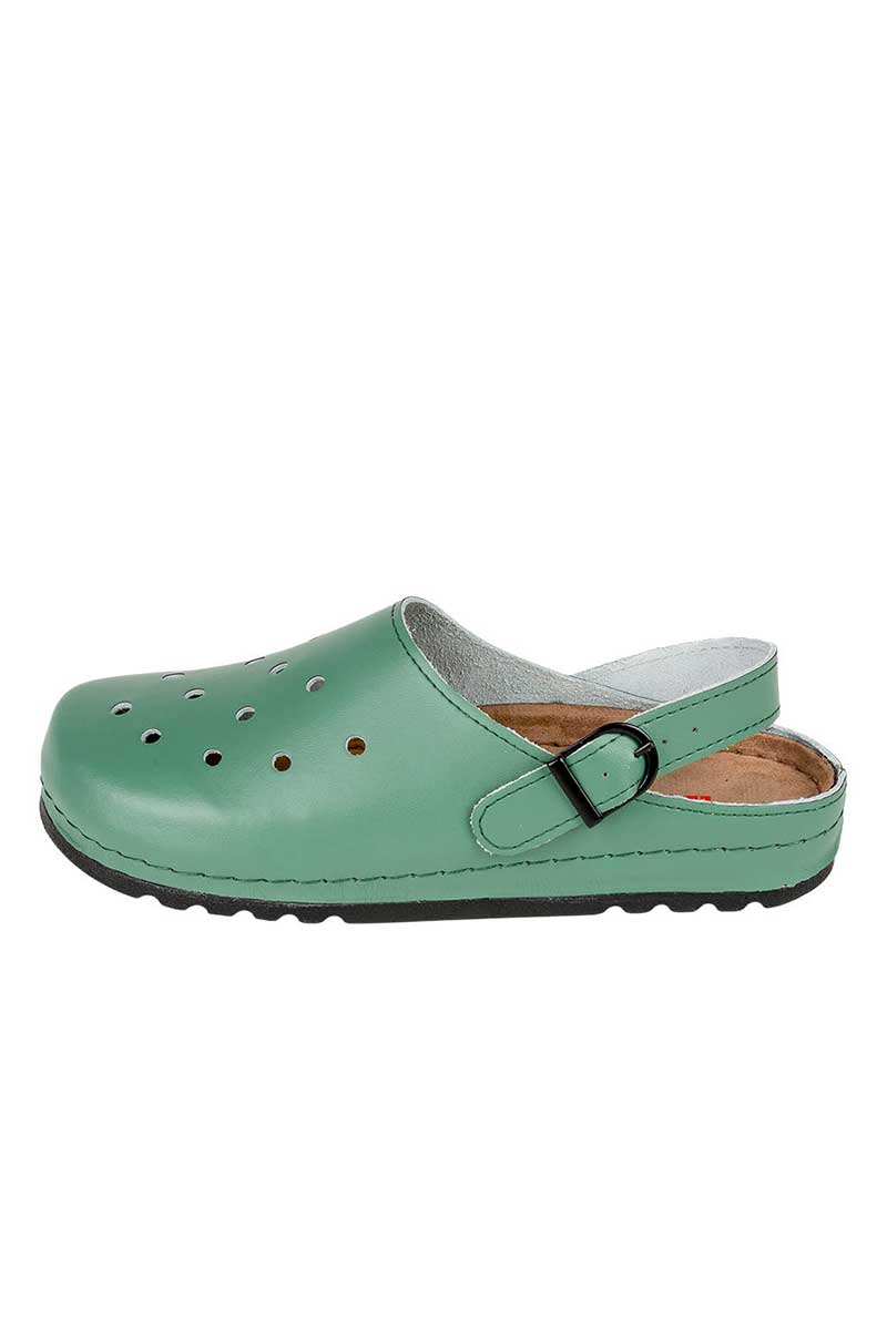 Flip-flops designed for those who spend long hours on the move and expect more from footwear than just “it’s comfortable.” The leather upper allows the feet to breathe, ensuring natural comfort and eliminating issues typical of synthetic materials. The soft MEMORY foam sole gently supports the foot exactly where it’s needed - without the feeling of sinking in. A contoured footbed and wide toe area help maintain proper foot alignment and reduce the risk of discomfort that can easily ruin a day at work. The non-slip rubber outsole provides confident traction even on slippery surfaces, while easy cleaning helps the flip-flops retain a fresh, professional look for longer. This is a model that discreetly takes care of comfort - without compromises and without unnecessary fuss.