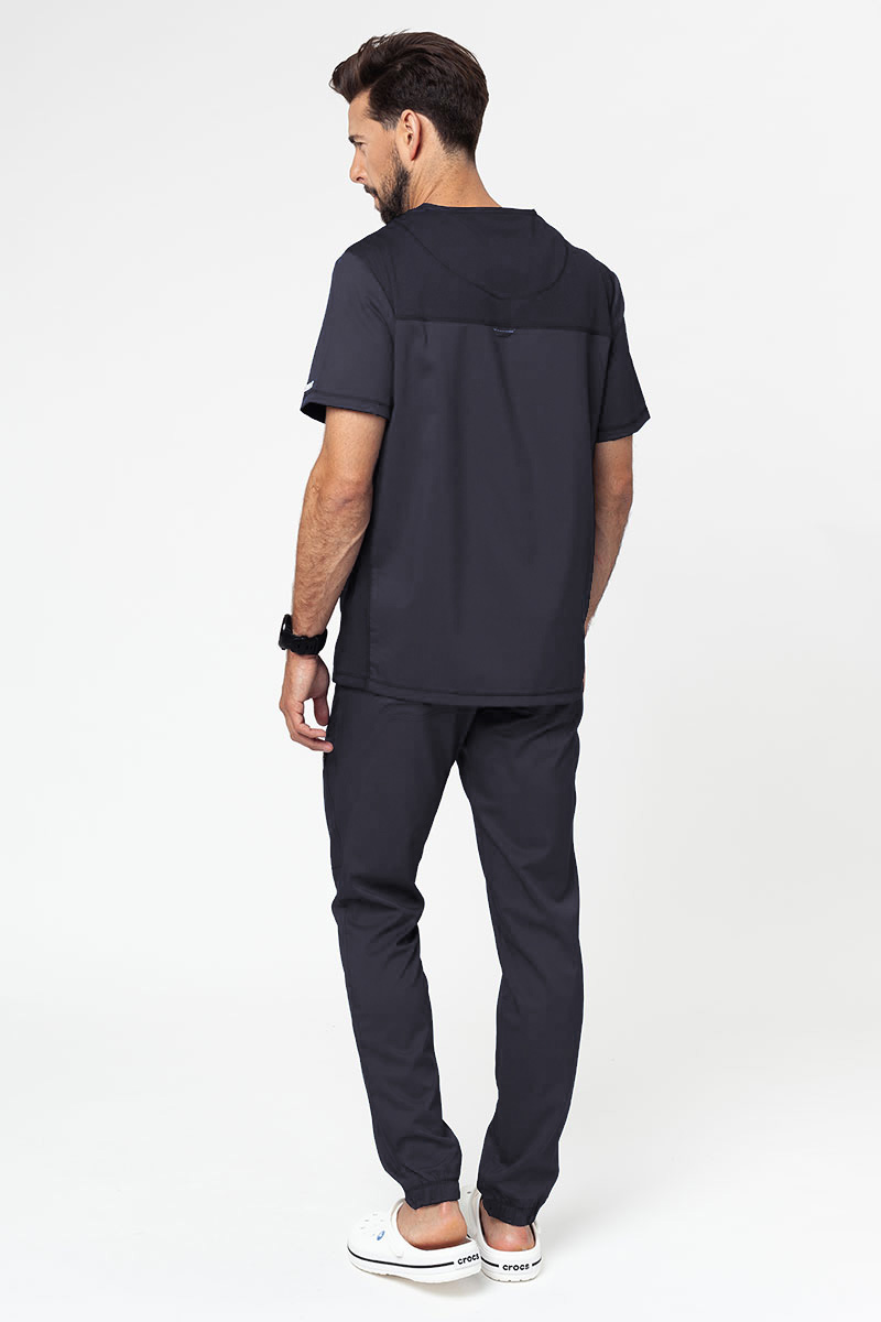 Off to the wardrobe! This Revolution Active scrubs set cannot walk on its own yet, but it’s perfect for active days at work. The sports design of the top, with mesh inserts, a zipped side pocket and elegant finishing, is taking style and comfort by storm. The jogger trousers with an elastic waistband and adjustable drawstring, leg cuffs and five trousers for the tools you need close at hand are reliable and functional in every detail. The scrubs set is made of supersoft breathable fabric with artificial silk and twill spandex. It will serve you for a long time – even if you wear it obsessively.