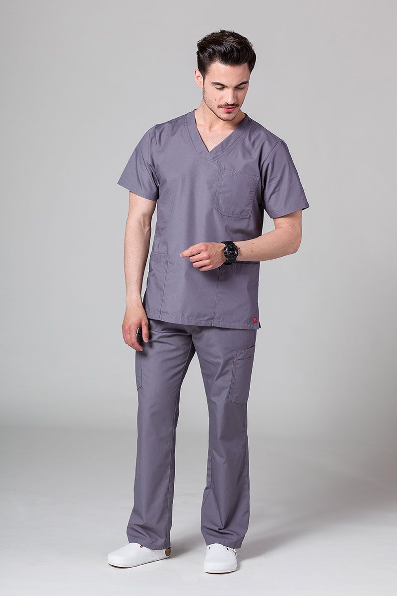 If you’re looking for a scrubs set that will make you look unique and professional, this is it. The Maevn Red Panda scrubs set consists of cargo trousers and a short-sleeve top. This combination is more than enough to ensure your comfort. The trousers have side pockets, a loose fit and an elastic waistband with a drawstring. The top also has practical pockets. The set will make you look fresh and professional.