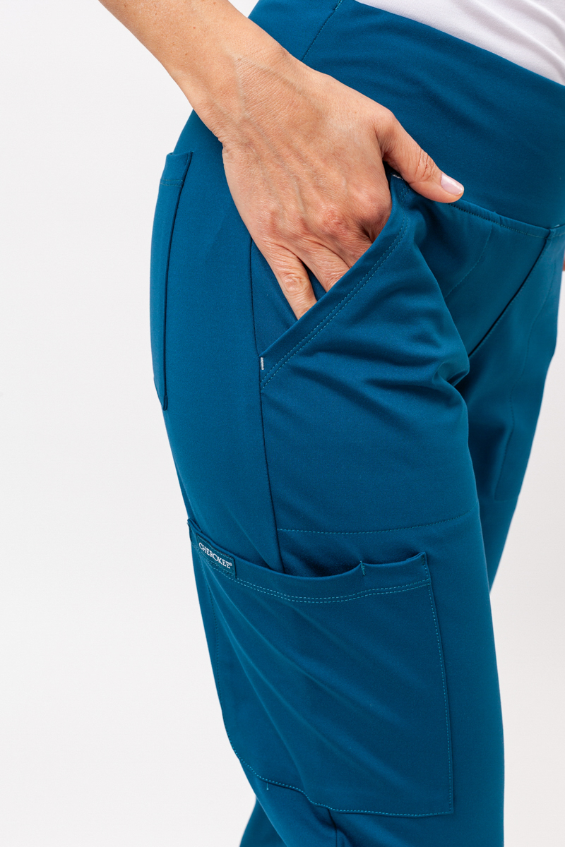 Step into your day with comfort and style in the Cherokee Achieve joggers. Made from an exceptionally soft, smooth-to-the-touch fabric, they wrap you in gentle comfort and keep you at ease even during long hours. The sporty, slightly tapered cut with a mid-rise waist allows full freedom of movement, while the wide elastic waistband with a drawstring ensures a perfect fit. Five functional pockets-including a cargo pocket with a pen slot-combine practicality with modern design, and stitching details on the front pockets add a subtle touch of character. Ready to blend professionalism with a relaxed, everyday style?