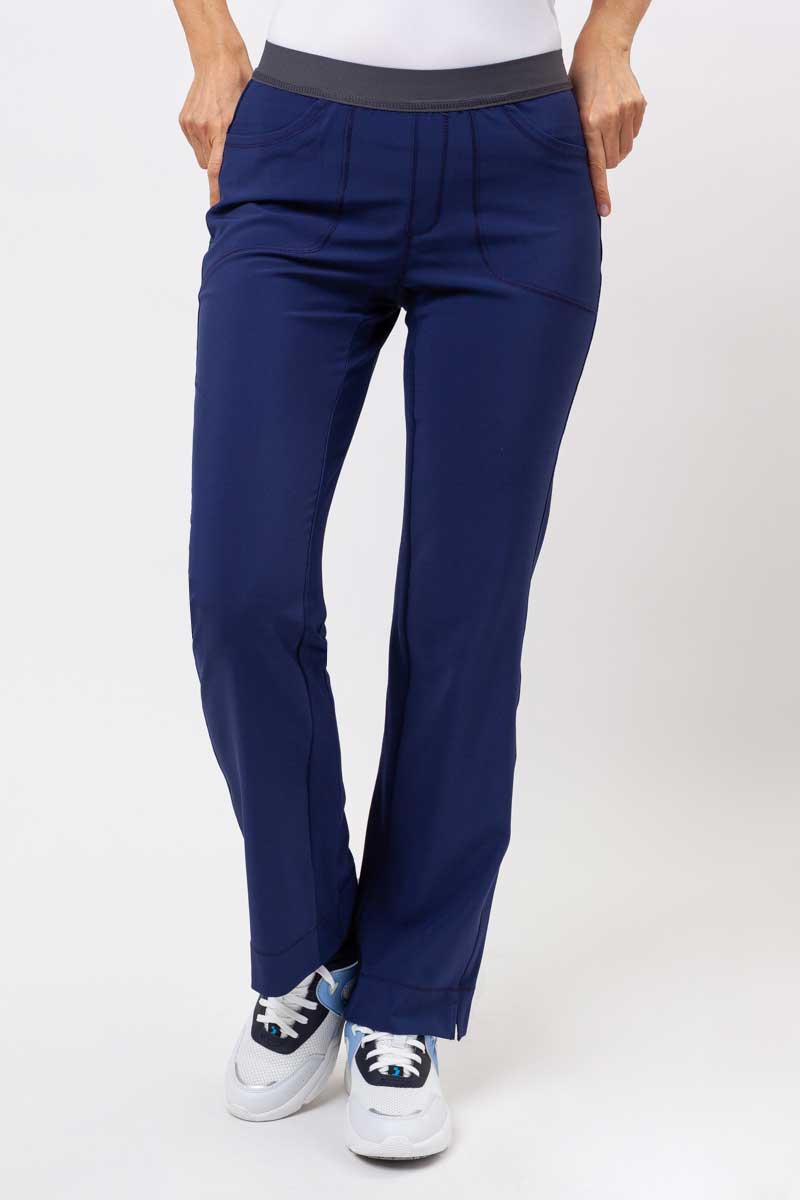 Perfectly fitted and flexible, with fashionably flared legs – these are the Cherokee Infinity scrubs trousers for you. The durable fabric adapts to your body and is easy to maintain. The stitches imitate jeans, but unlike them, these trousers have a wide waistband to ensure comfort and good fit. The pockets look modest but they are really capacious: they can hold a smartphone, a small notebook and a couple of pens. Thanks to the leg cuffs with vents, the trousers look great and never roll up on shoes. They’re simply the best!