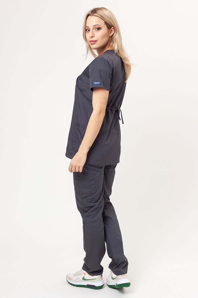 Are you ready for a new, effective and comfortable scrubs set? Check out this set of scrubs trousers and a scrubs top from the Cherokee Originals collection. This is a true combination of classic design with the latest trends. The trousers are simple and functional. With their loose fit, slightly tapered legs and waistband, they will become a staple element of your outfits. Match them with the mock-wrap top to spice up your look. With this scrubs set, comfort is assured. The fabric is strong and soft at the same time, so the tunic and the trousers won’t limit your movements. Both the trousers and the top have numerous pockets to store all that you need during a day’s work.