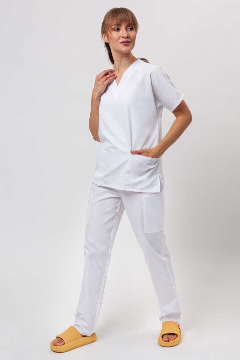 Are you in a hurry? You definitely need clothes that are quick to put on. The medical trousers from the Originals collection are the best choice when it comes to the speed of getting dressed. Thanks to the classic cut with slightly tapered legs and an elastic waistband, putting them on will take only a couple of seconds. Then you can enjoy these scrubs trousers’ numerous features: nice-to-touch fabric that is easy to keep clean (can be washed even at 70°C), two cargo pockets with special slots for a smartphone and scissors and the intriguing design. Just find out for yourself!