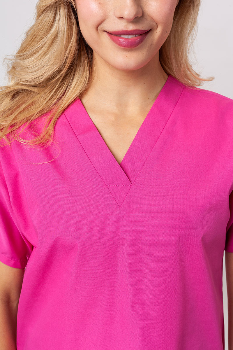 This practical, strong and affordable medical set from the American company Cherokee is the essence of top-notch scrubs. The top has a classic cut with a V-neck and stylish stitching. It will charm you with its simplicity and elegance. The trousers have slightly tapered legs and an elastic waistband to make them comfortable. This way, you’ll have full freedom of movement during your work. Both items are made of nice-to-touch and easy-to-wash fabric. It can be washed even at 70°C. The set is from the Originals collection. It’s a must have for your professional style!
