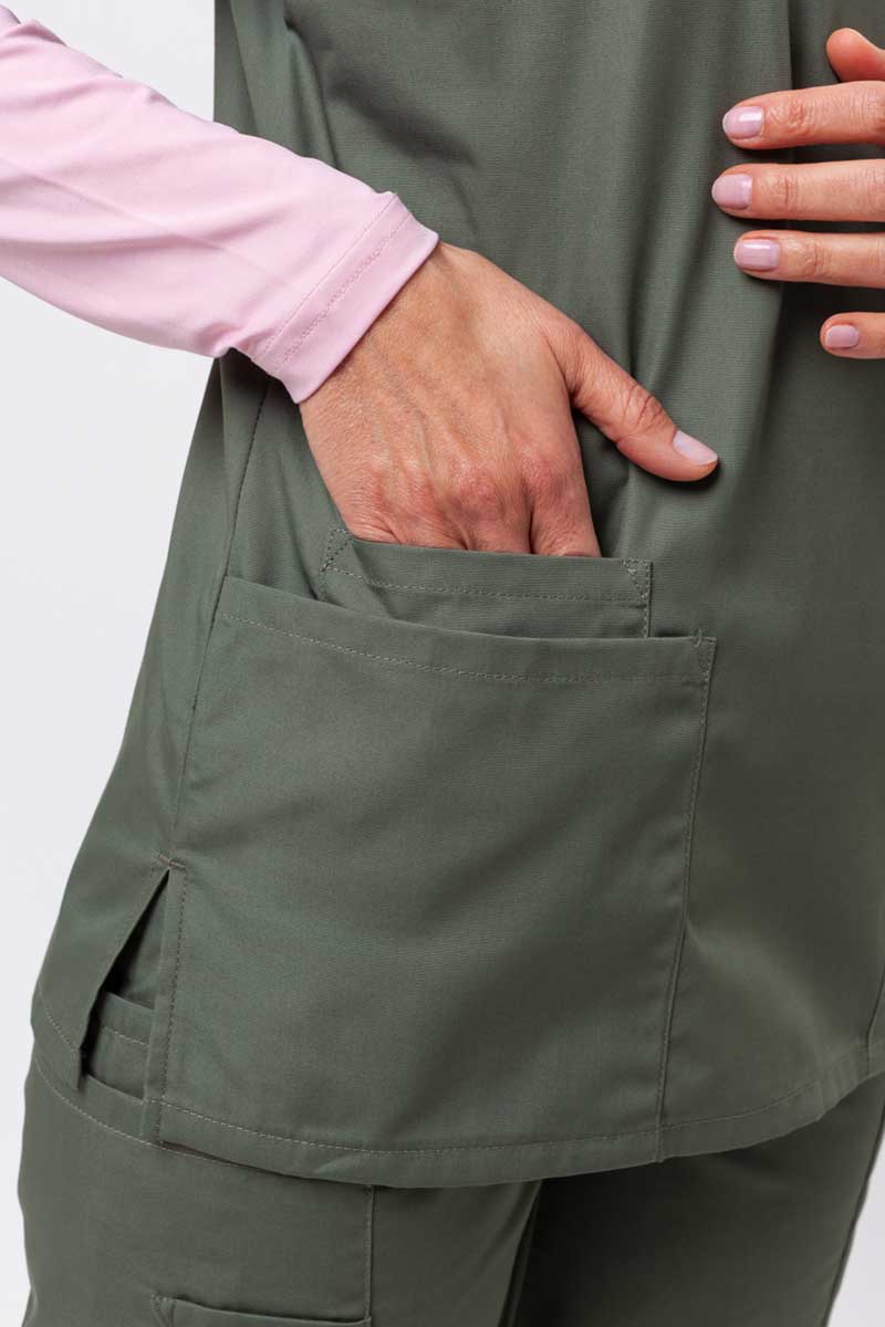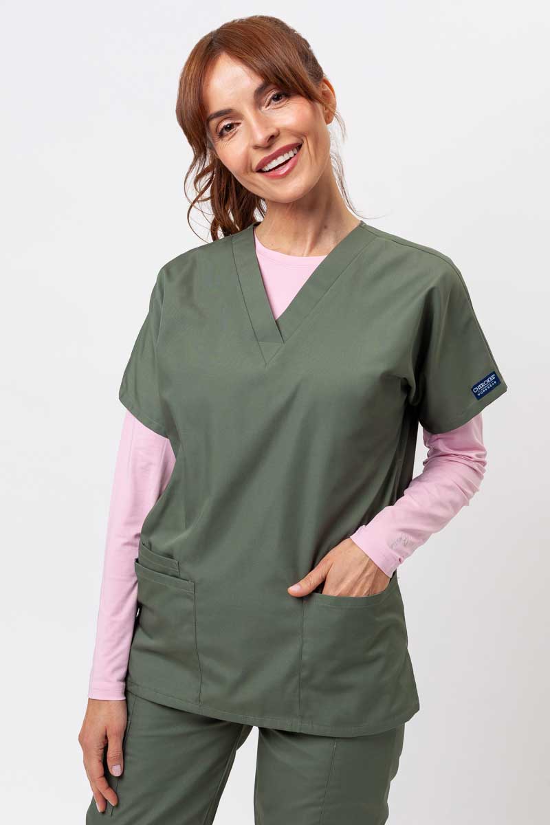 You surely feel happy when you can finally take off your medical uniform. With this top from the Originals collection, you’ll be happy when you put it on! All thanks to the brilliant designers from the American company Cherokee Uniforms. The top has a classic cut with a V-neck and stylish stitching. It will charm you with its simplicity and elegance. You can easily create a complete outfit with it. The scrubs top is made of a strong fabric that is resistant to dirt and can be washed even at 70°C. The side vents and spacious pockets make the top very comfortable, especially during a long ward duty. Try it out!