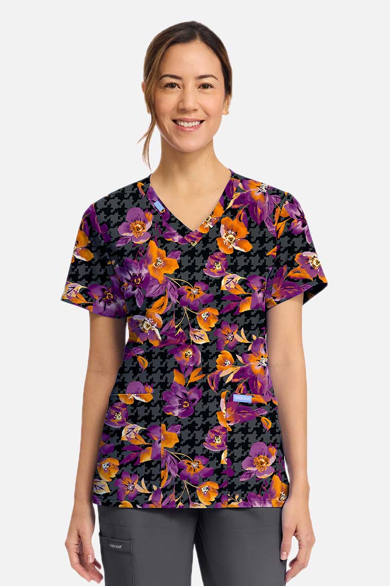 Women's Cherokee Prints V-neck scrub top Velvet Floral