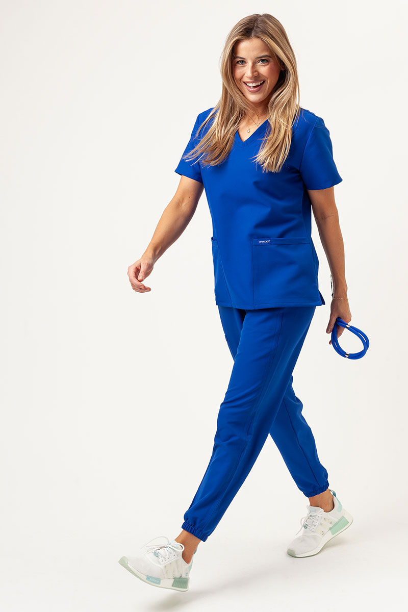 This scrub set is a real revolution – these trousers and the top not only look great together but they are also ready for your longest shifts. The scrub top is like a long, soft embrace. It’s a dream-come-true for everyone looking for breathable, quick-drying fabrics that say goodbye to wrinkling and bad odours. The tailored fit with the V-neck will level up your style, while the wider bottom with side vents will make moving easier. There are also spacious pockets and a convenient loop for your badge. You can be both stylish and organised! What about the scrub trousers? They’re pure magic! The comfortable and elasticised joggers will make you feel relaxed and look smart at the same time. The tapered legs and mid-rise cut ensure comfort while looking fashionable. The fabric has a lot of superpowers: it’s breathable, quick-dry and equipped with the anti-odour PROTX2® technology. There’s a comfortable wide waistband too, designed with all the medical marathon shifts in mind.