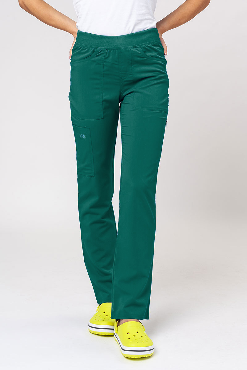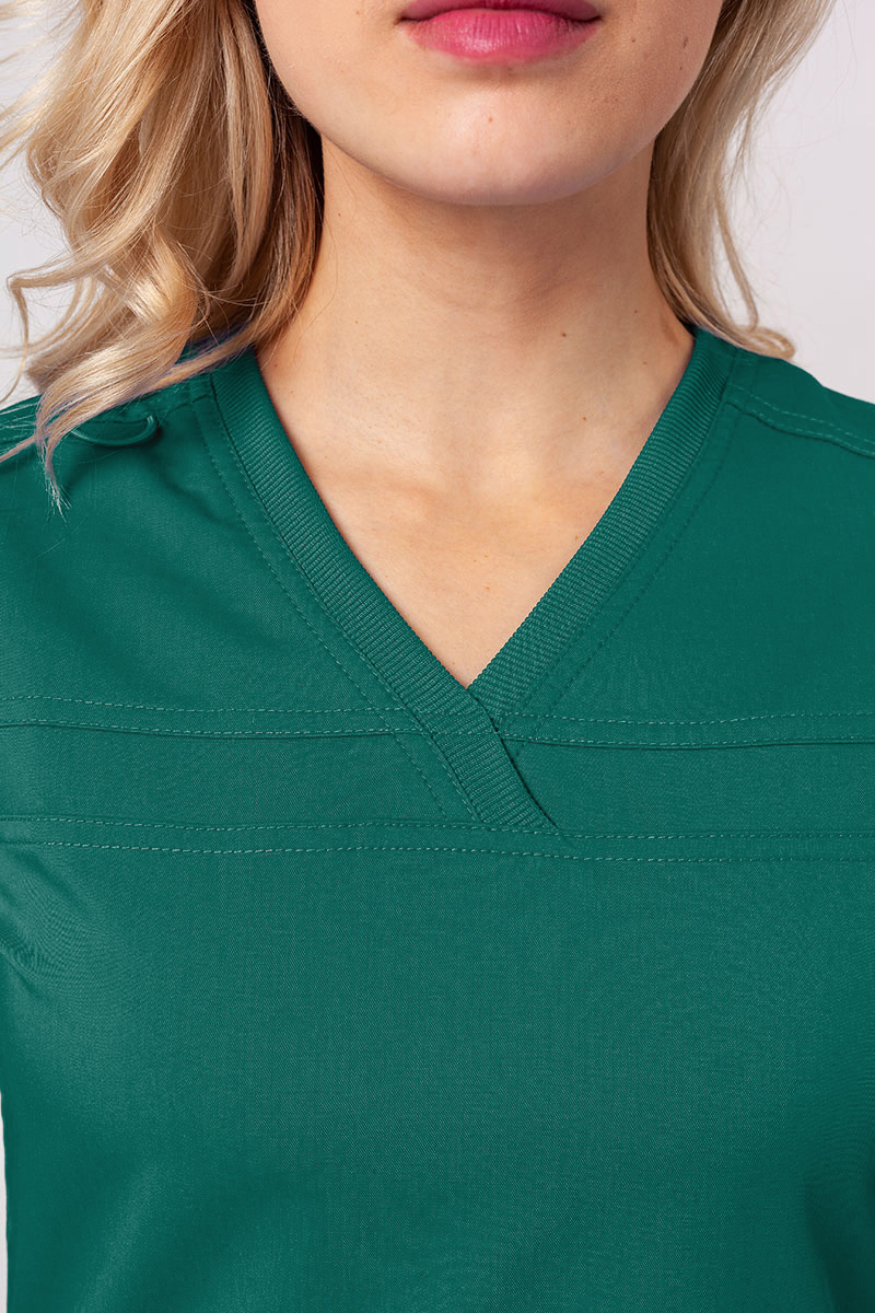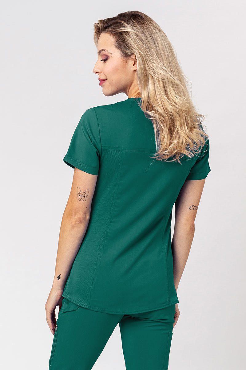 The perfectly made and practical scrubs set from the Dickies company combines a stylish top with modern trousers. The scrubs top has a modern cut and a V-neck finished with a knitted fabric just like back sections, thanks to which you can always move freely. The mid-waist trousers have tapered legs and an elastic waistband with a drawstring for additional adjustment. Both products are made of soft and comfortable fabric with added artificial silk and elastane – and it can be washed at 60°C!