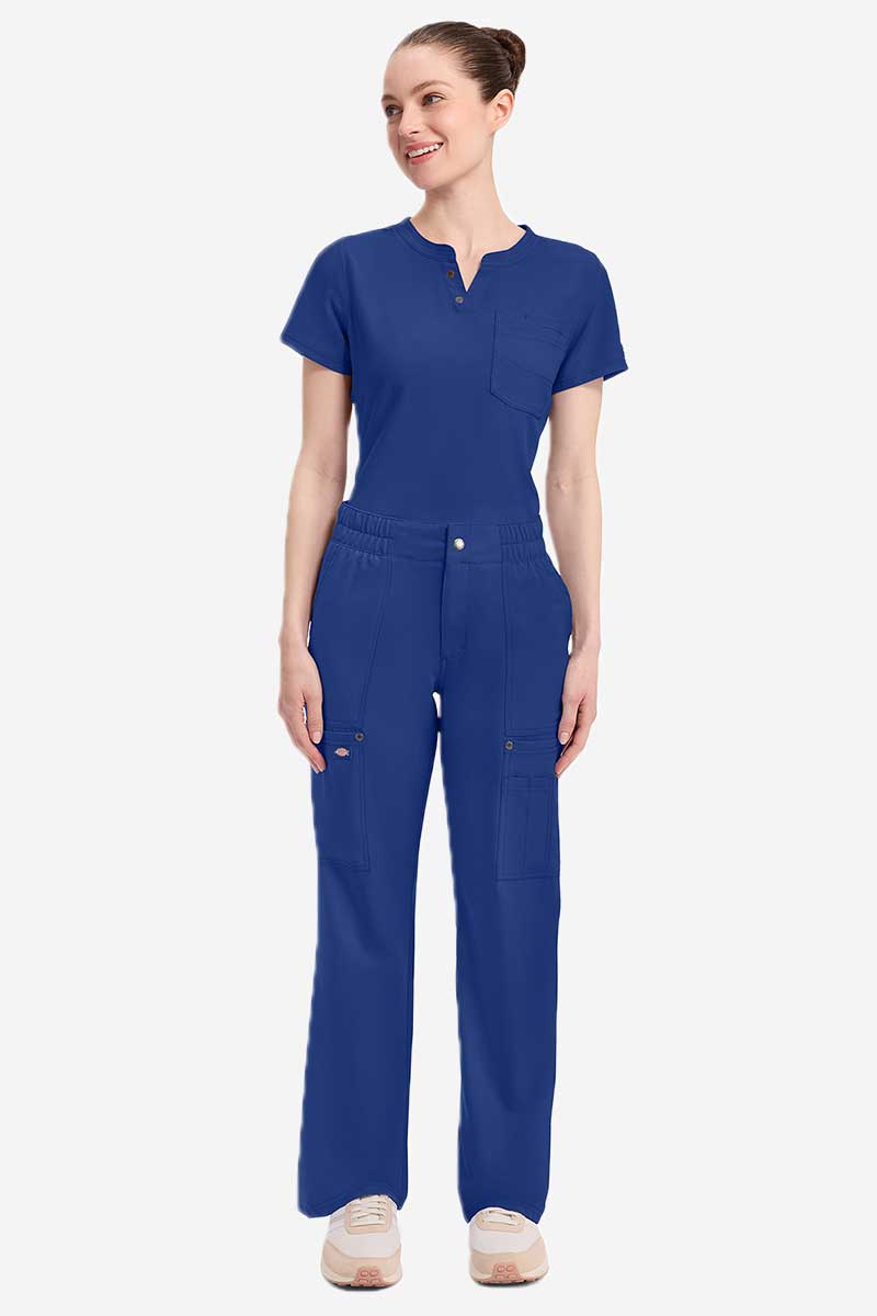 Comfort that stays with you every step of the way is called EDS NXT. These pants from the collection are a reliable choice for any shift. The modern, sporty cut with straight legs ensures freedom of movement, while the elastic waistband with a hidden drawstring and classic button closure provides a perfect fit. Two spacious front pockets, two side cargo pockets with decorative snap buttons, and two special pen compartments offer easy access to all your essentials. Made from an elastic, soft-to-the-touch fabric that efficiently wicks moisture, these pants provide comfort throughout even the longest hours of wear.