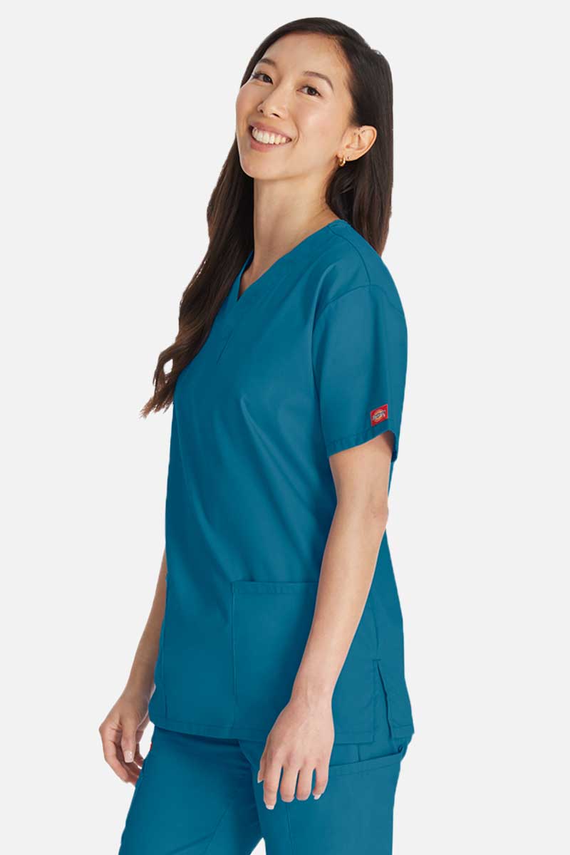 Comfortable, resistant and fitting: these are three key features of Dickies Medical, which are embodied in this model. If you’re looking for them in your medical clothing, this scrubs top from the Signature collection will quickly become one of your top choices. The timeless cut with a V-neck and short sleeves has side vents and two spacious pockets. This is a solid foundation for your professional outfit. The strong fabric has high cotton content. It flows naturally and can be easily washed even at 60°C. The top has also fashionable features like contrasting inner hems and a small hidden pocket. You’ll always be satisfied with this top. Do you want to try it out?