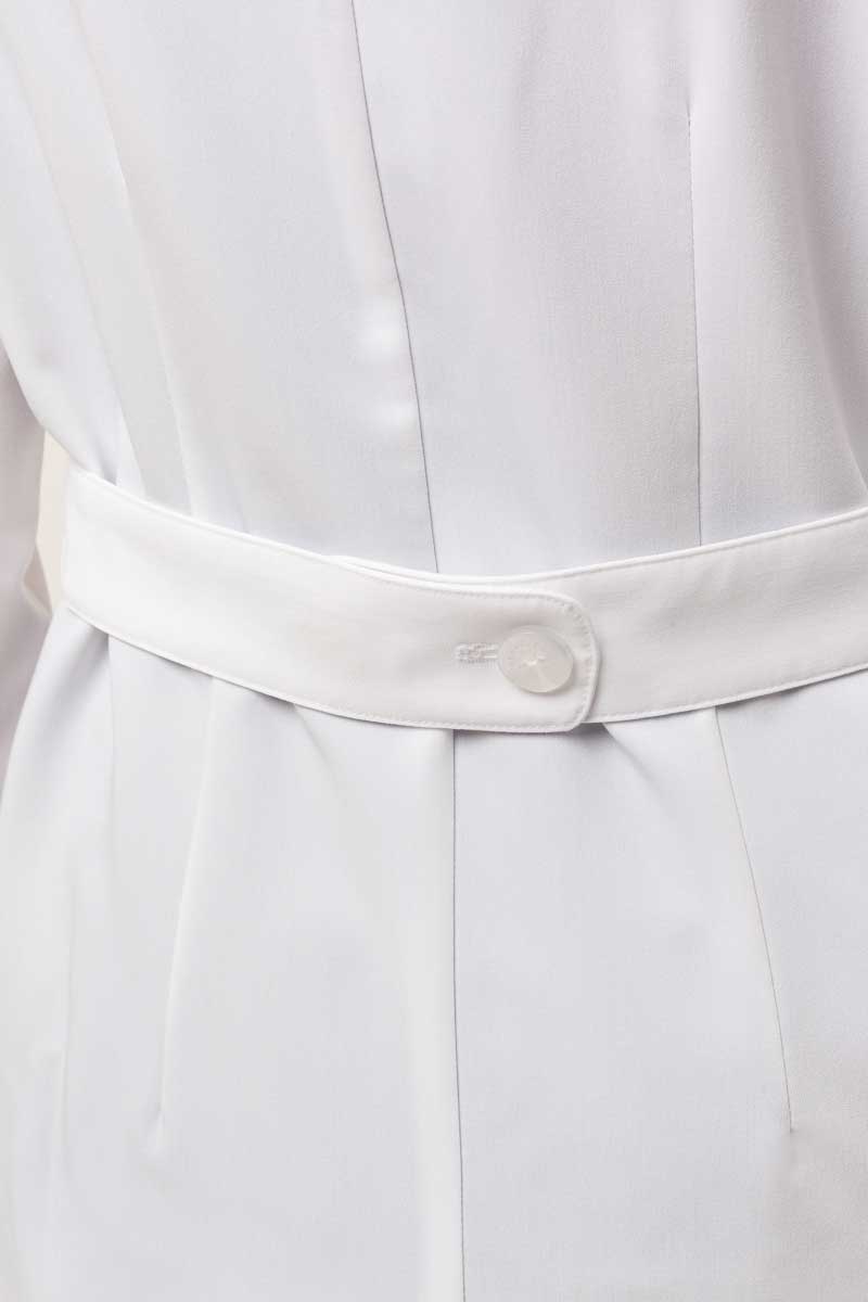 Looking for an apron that blends elegance with function? This piece impresses with its modernist cut and softly rounded collar that brings a subtle, feminine touch to the silhouette. The supple, stretch fabric moves with you, while the thoughtfully placed pockets keep essentials within easy reach. Side and back slits ensure complete freedom of movement, and three sturdy buttons engraved with the “Healing Hands” logo add a refined detail. A pocket patch and a sleek collar pin highlight the design’s polished finish. It’s the choice for the modern professional who wants to look sharp and feel comfortable all day long.