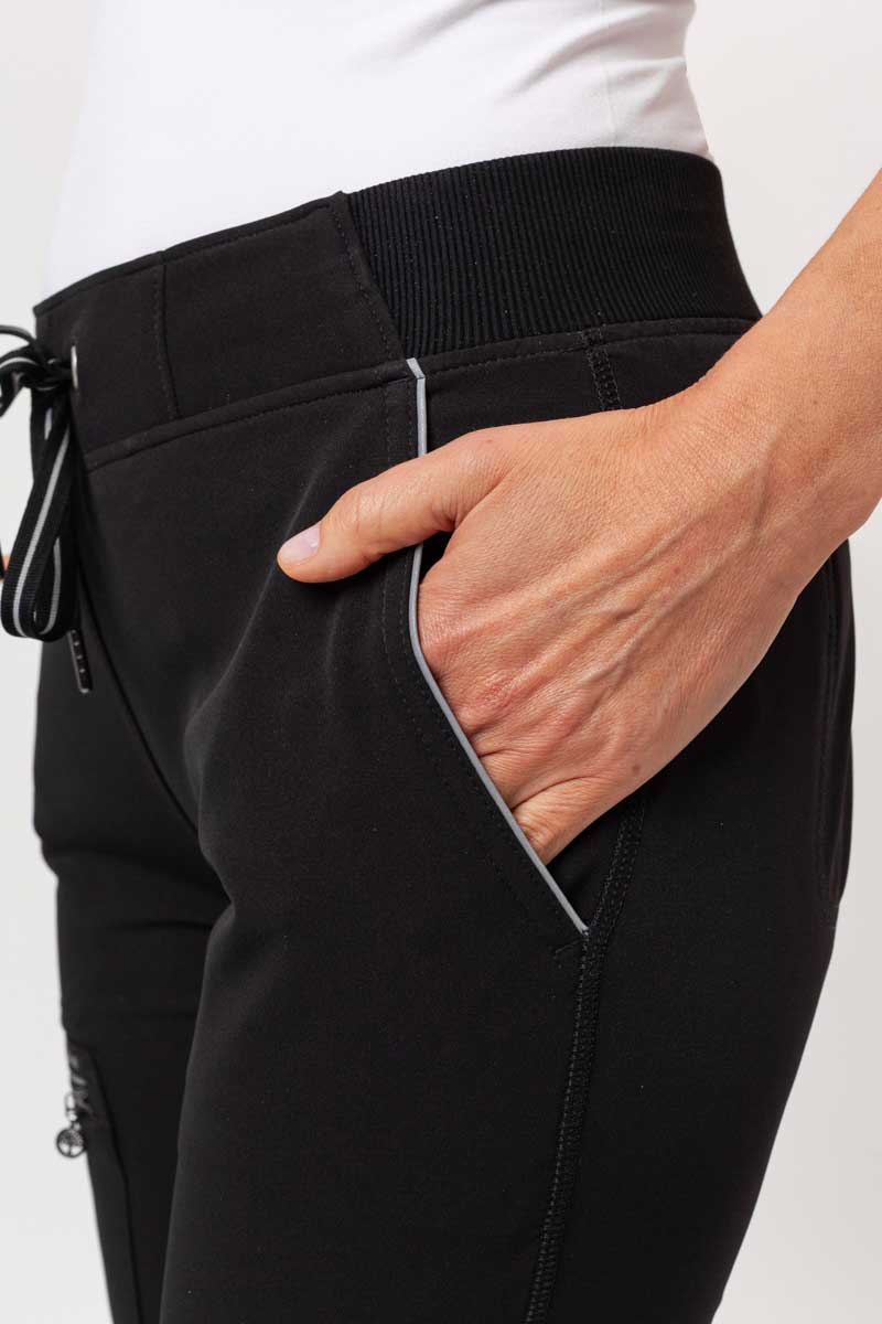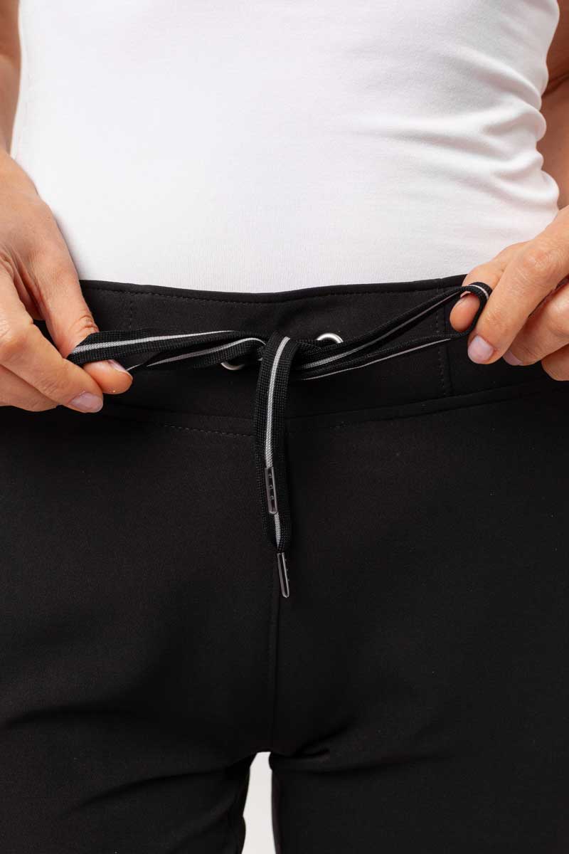 Retro with a modern twist - that’s the style of Nisha trousers. Straight legs and subtle, slightly reflective trim on the pockets and drawstring add character and emphasize the cut’s clean lines. The elastic waistband with drawstring ensures a perfect fit, while five practical pockets - including a cargo pocket with a metal logo - hold all your essentials. Soft, four-way stretch fabric wicks moisture and retains its color, no matter how busy your day gets. Nisha combines functionality, comfort, and a lightly sporty retro style - perfect worn alone or paired with the Sonia or Skyler tops.