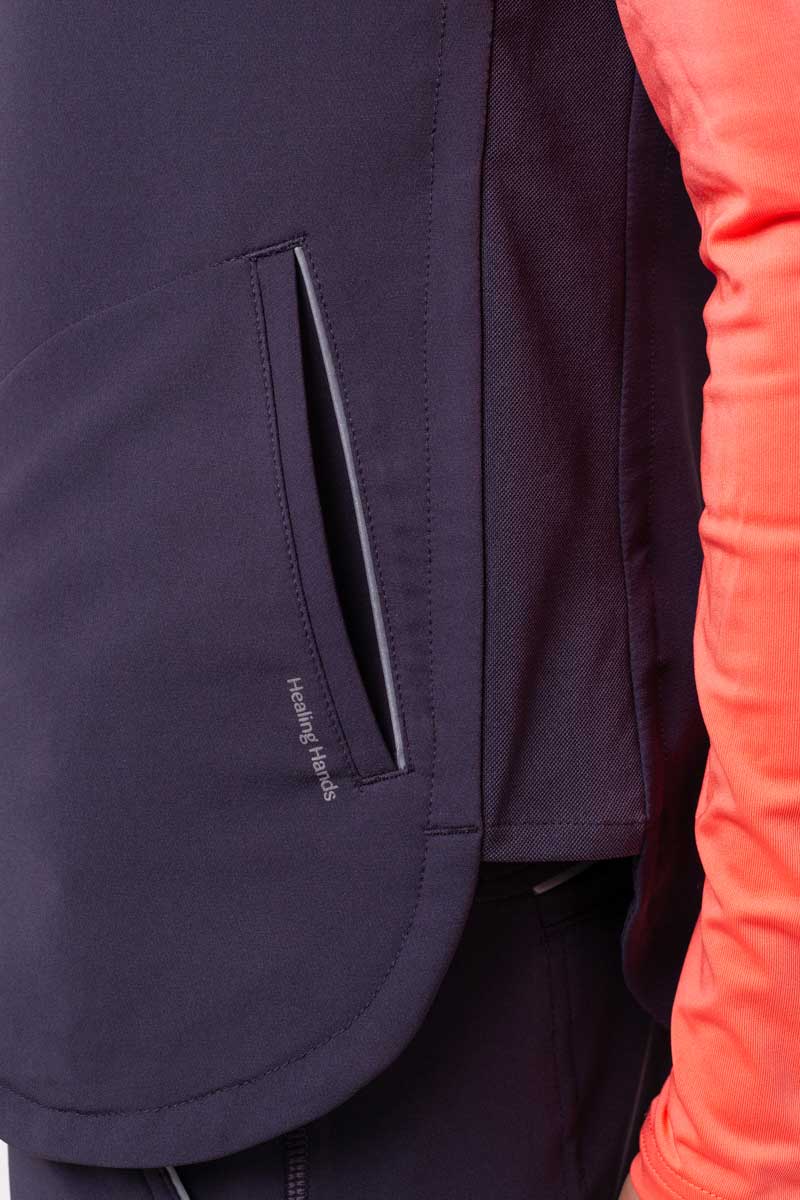 Retro details meet a modern cut - the Skyler and Nisha set stands out with subtle style and refined touches. The rounded hem of the top, shaping seams, and side slits add lightness to the silhouette, while the trim on the pockets and the two-tone drawstring on the trousers bring a fashion-forward accent. Straight trousers with a cargo pocket combine functionality with character, and five pockets hold everything you need for work. Soft, stretch fabric wicks moisture and retains color, ensuring all-day comfort. This complete set is a uniform that naturally draws attention and lets you stand out with style.