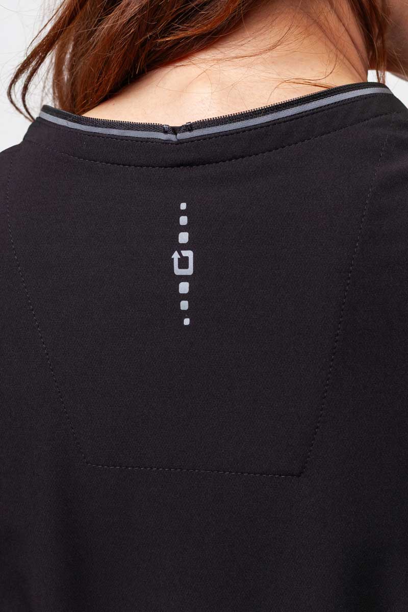 Reflective trims catch the light with every movement, while the fitted silhouettes of the top and trousers give the uniform a subtly sporty, modern feel. The zip neckline, shaping seams, and delicate details on the top enhance the figure with a refined twist, while the straight trousers with reflective trim on the pockets and two-tone drawstring create a cohesive, harmonious line. Five practical pockets hold everything you need for work, and the soft, four-way stretch fabric wicks moisture, retains color, and provides all-day comfort. This set combines comfort, functionality, and style - a uniform that truly stands out.