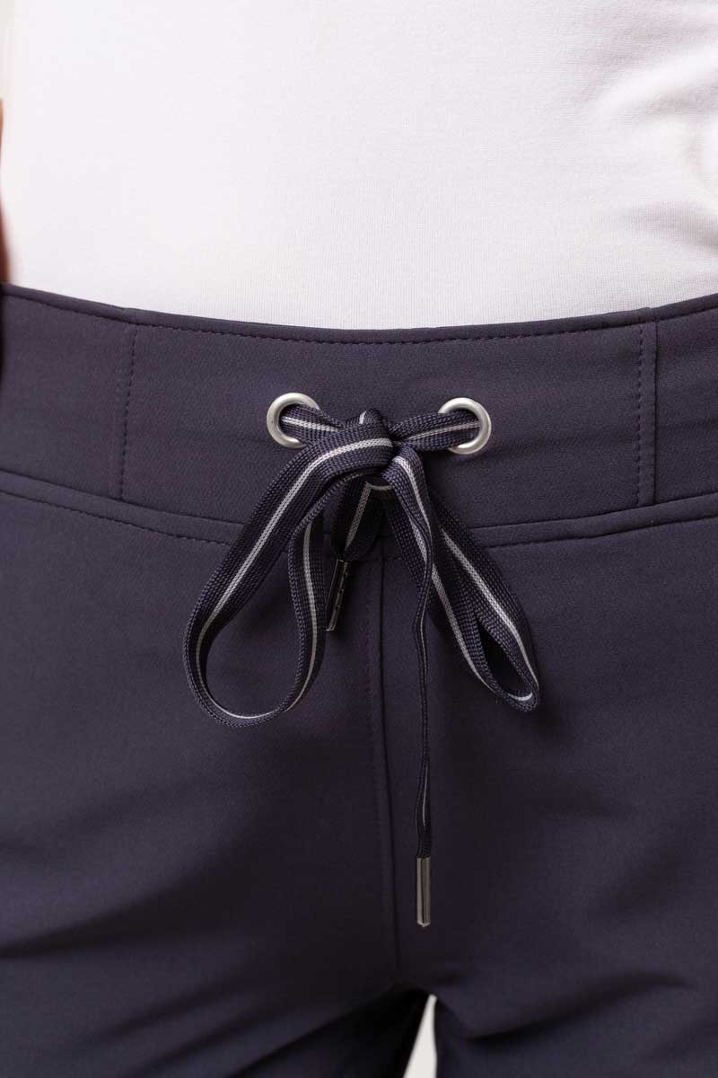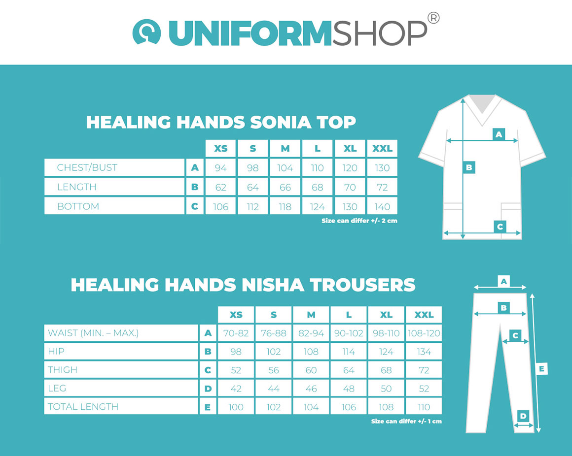 Reflective trims catch the light with every movement, while the fitted silhouettes of the top and trousers give the uniform a subtly sporty, modern feel. The zip neckline, shaping seams, and delicate details on the top enhance the figure with a refined twist, while the straight trousers with reflective trim on the pockets and two-tone drawstring create a cohesive, harmonious line. Five practical pockets hold everything you need for work, and the soft, four-way stretch fabric wicks moisture, retains color, and provides all-day comfort. This set combines comfort, functionality, and style - a uniform that truly stands out.