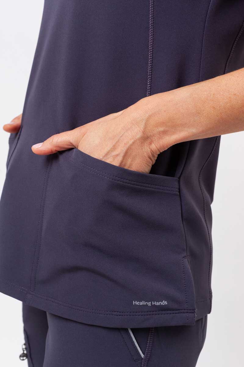 Sonia starts with the neckline - asymmetrical, accented with a subtle zipper that gives the top a modern, distinctive look. The tailored cut and shaping seams gently highlight the silhouette, while side slits add a sense of lightness. The soft, four-way stretch fabric wicks moisture, resists fading, and ensures complete freedom of movement. Three practical pockets, including one with a pen divider, combine functionality with thoughtful design. Subtle reflective piping and a discreet zipper logo complete the look, giving the top a refined style that stands out in any work environment.