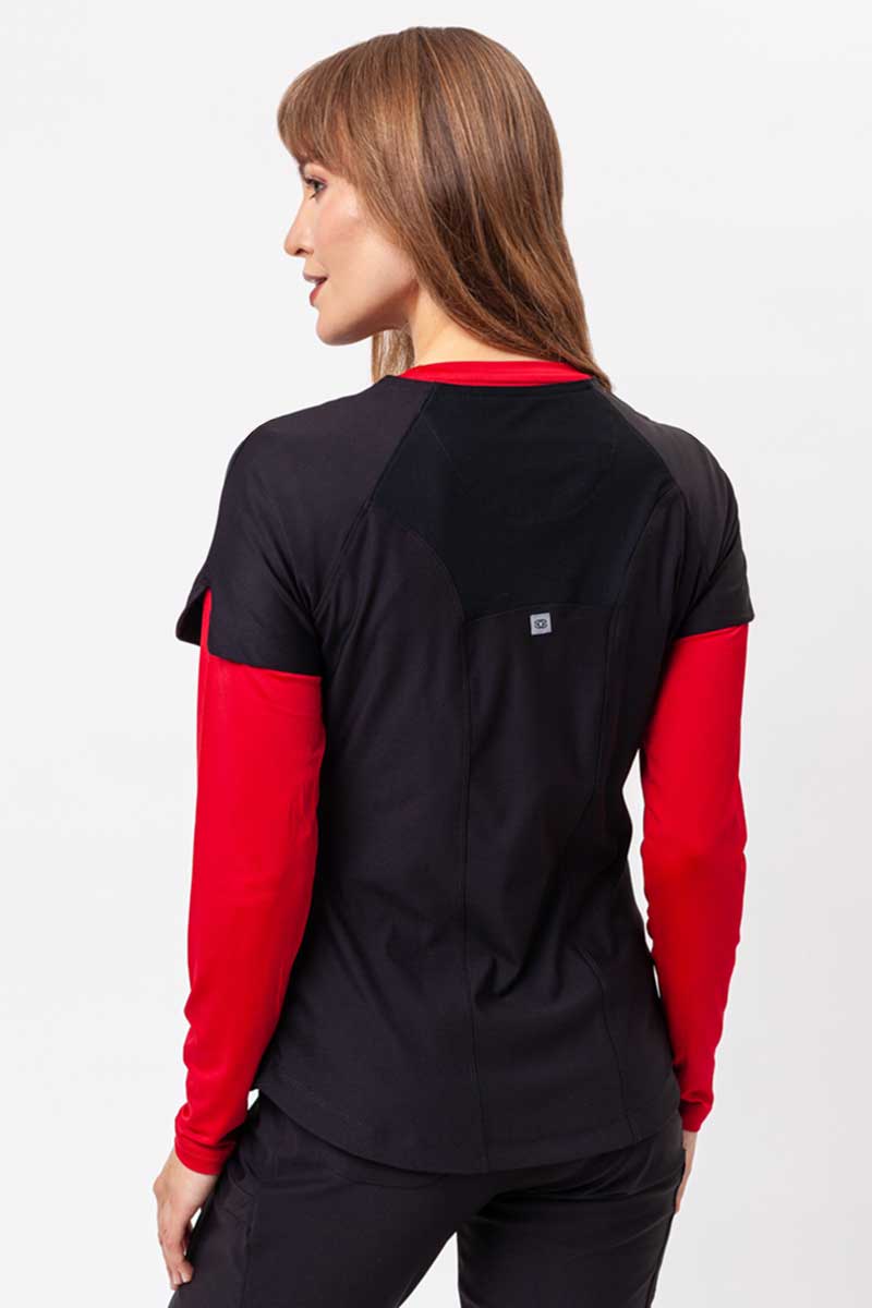 Experience full freedom of movement and comfort that keeps up with you on even the most demanding days. The top features a distinctive “Y”-shaped neckline and raglan sleeves with slits for lightness and ventilation, while the stretch fabric wicks moisture and stays wrinkle-free, even during intense activity. Wide-leg pants with an elastic waistband and practical drawstring ensure all-day comfort, and multiple pockets keep essentials within easy reach. Shaping seams and a subtle back slit highlight the sporty character of the set and provide maximum mobility. Perfect for a dynamic work environment, this professional set combines functionality, comfort, and a modern look in one.