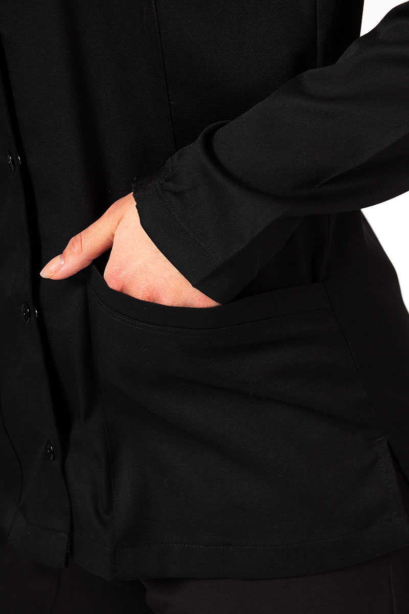 This top with press studs and long sleeves from the American company Maevn belongs to the well-received Matrix collection. Healthcare professionals love it for its great fabric made of polyester with added artificial silk and spandex. This combination makes this scrubs top very nice-to-touch, the fabric is wrinkle-resistant, and its high elasticity ensures your comfort throughout the day. The top will be a perfect choice if you need something for colder days that will emphasise your look of a healthcare professional.