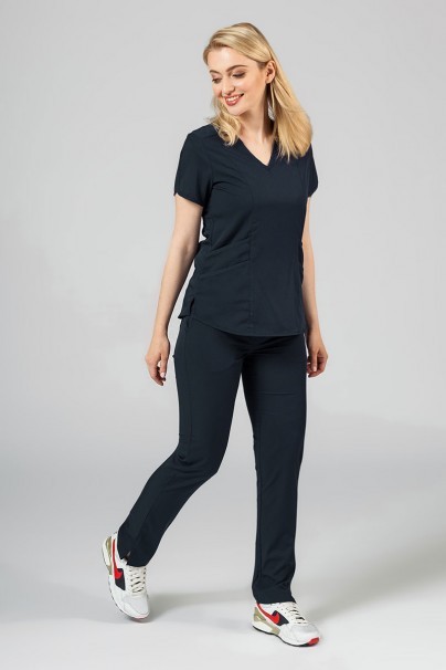 Create a well-balanced outfit that combines comfort and style with this scrub set from the Maevn Matrix Pro collection. The jogger trousers have tapered legs, so they are a bit looser at the hips. They have wide leg cuffs to let you move freely and comfortably. The scrub top will captivate you with the available colours, feminine cut and delicate fabric. Its tailored fit and beautiful V-neck will accentuate your shapes, while the subtle but capacious pockets will take care of the practical aspect of your uniform. The scrub set is made of antibacterial fabric which contains spandex – it’s wonderfully stretchable and silky. This is an ideal set to help you shine and feel comfy and professional at the same time.