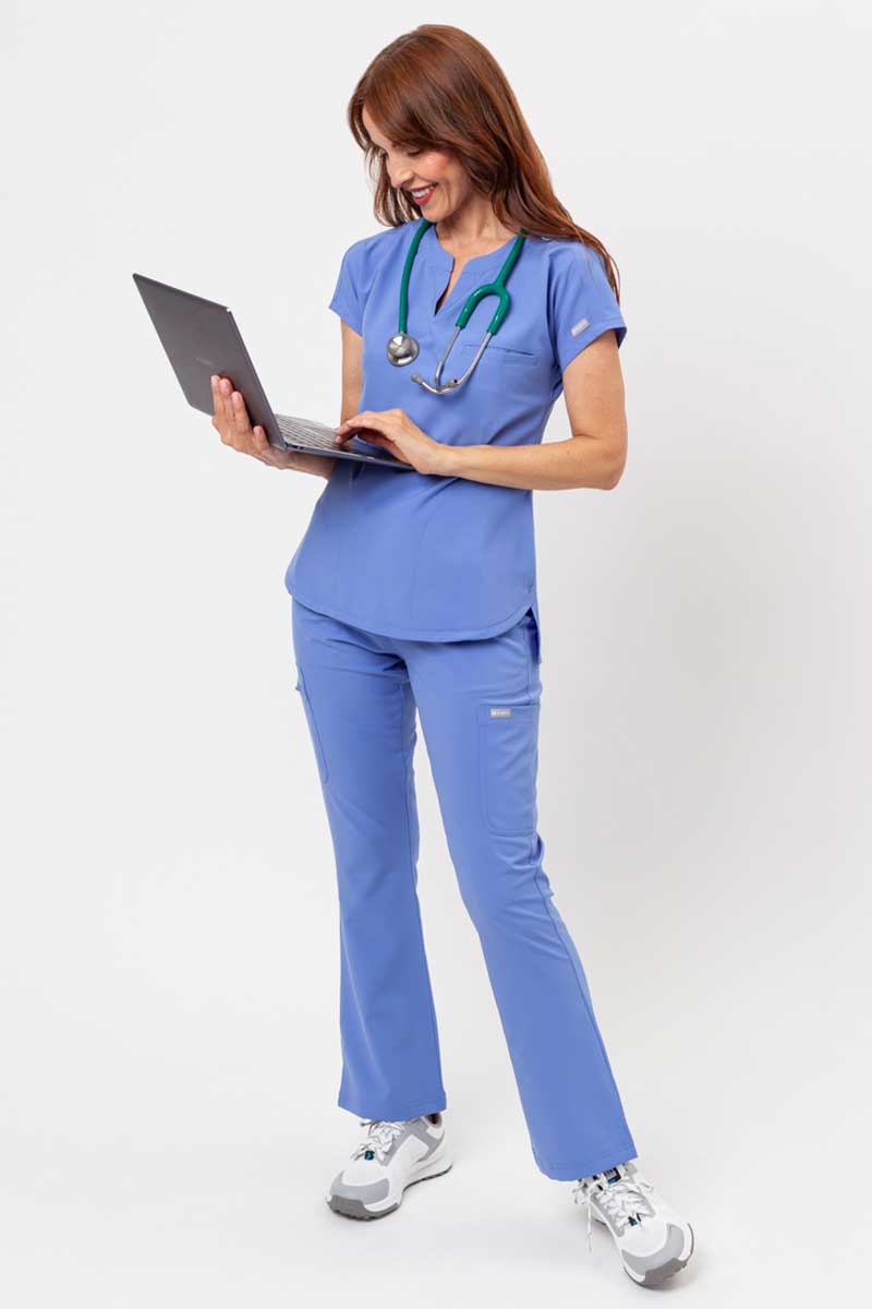 A cohesive outfit boosts confidence – especially in professions where professionalism matters. And if you also care about comfort and a stylish design, the Maevn Momentum set will be a perfect choice. The modern top features an elegantly finished neckline, short dolman sleeves, and a back pleat for a flattering fit and freedom of movement. The ultra-comfortable pants come with seven functional pockets, a knit waistband with a drawstring, and side slits at the ankles for a perfect fit. The set is made from durable, stretch fabric that wicks away moisture, ensuring a pleasant wearing experience. By choosing this set, you can enjoy comfort and style every day.
