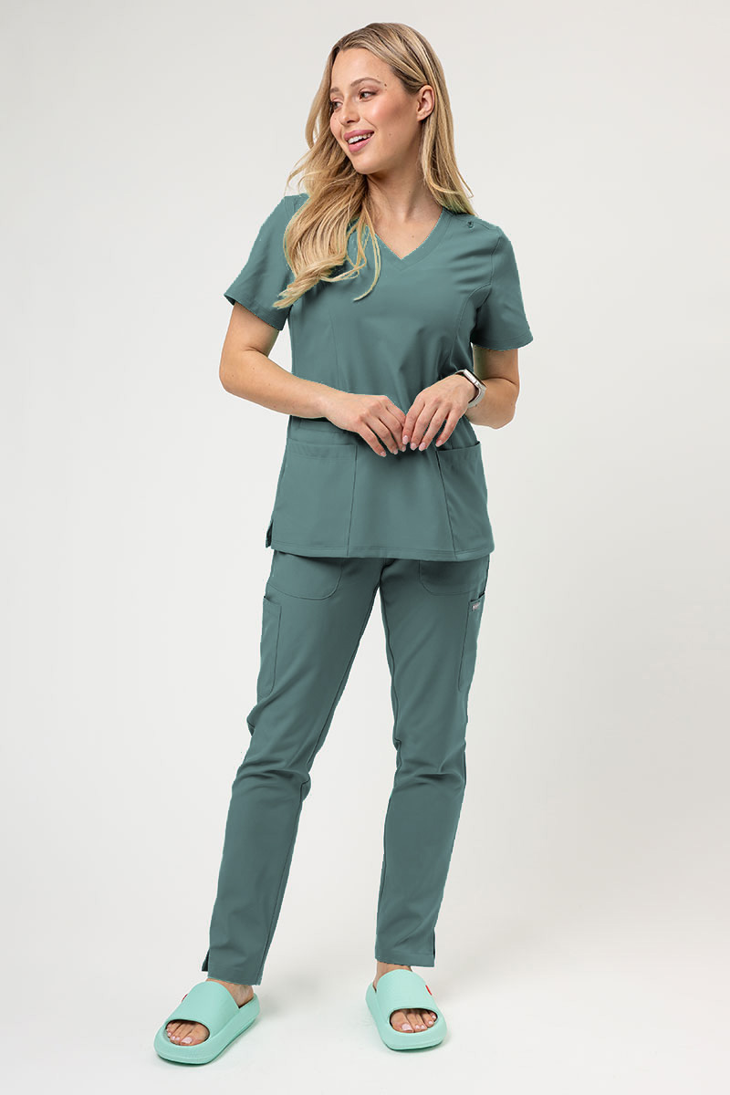 Women's Maevn Momentum scrubs set (Double V-neck top, 6-pocket trousers) moss green-10