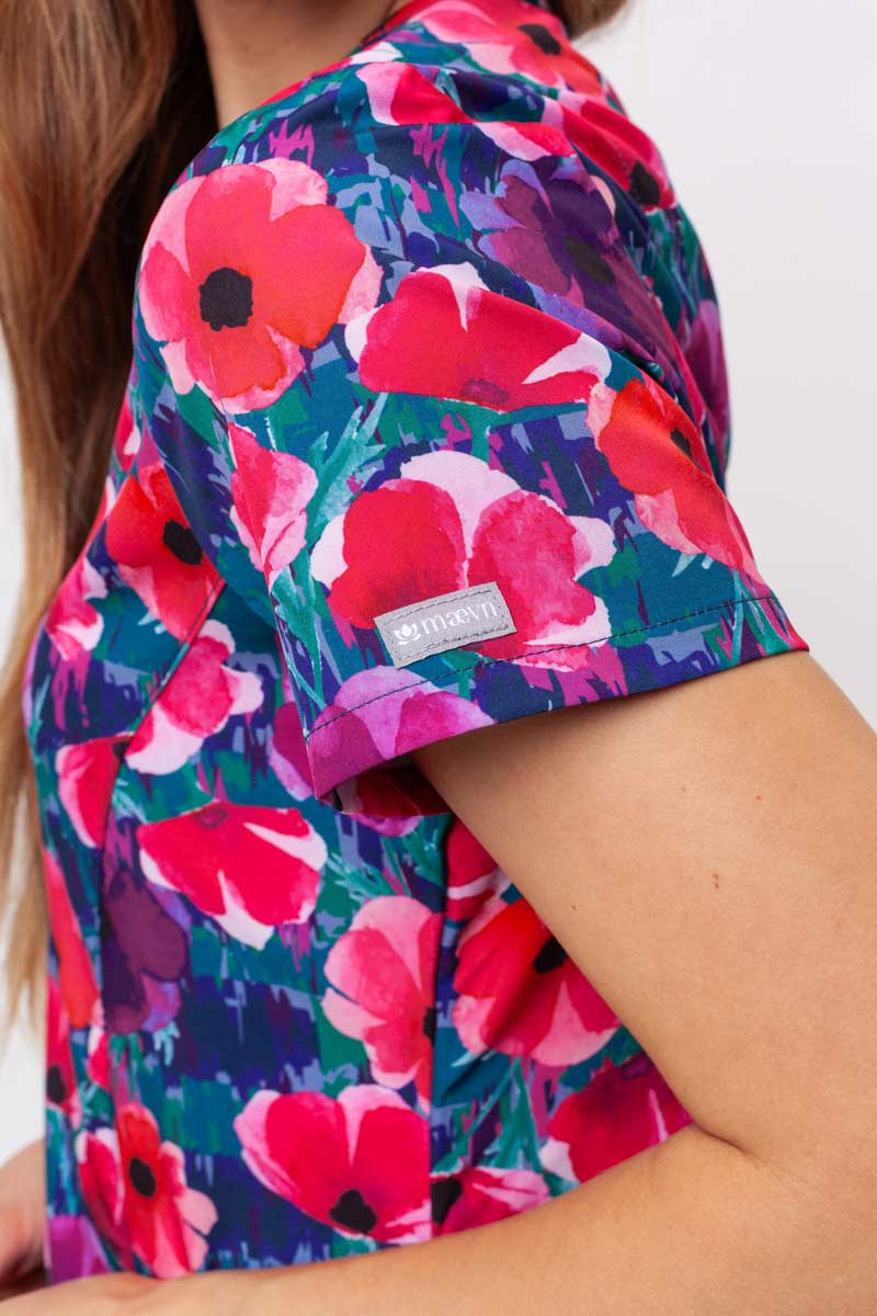 Try something new with this top that combines a bold print with a refined cut. The gently rounded V-neck adds a touch of lightness, while the front shaping seams subtly enhance your silhouette. Breathable fabric with a touch of spandex ensures full freedom of movement and all-day comfort. The ventilation system keeps you feeling fresh, and reinforced pockets with double stitching guarantee reliable durability. Three practical pockets let you keep everything you need within easy reach. It’s the perfect blend of functionality and modern style, giving your everyday uniform a fresh, contemporary edge.