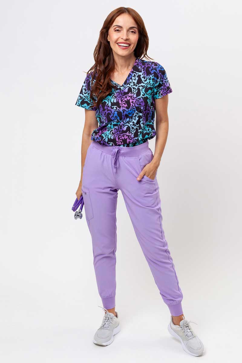Try something new with this top that combines a bold print with a refined cut. The gently rounded V-neck adds a touch of lightness, while the front shaping seams subtly enhance your silhouette. Breathable fabric with a touch of spandex ensures full freedom of movement and all-day comfort. The ventilation system keeps you feeling fresh, and reinforced pockets with double stitching guarantee reliable durability. Three practical pockets let you keep everything you need within easy reach. It’s the perfect blend of functionality and modern style, giving your everyday uniform a fresh, contemporary edge.