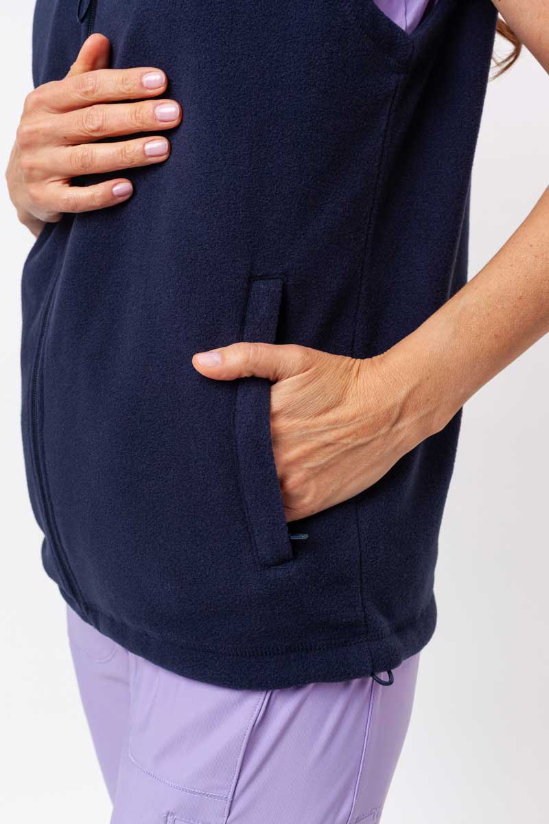 This fleece vest will be a great addition to your professional outfit. It’s perfect for cold days when you want to feel warm, but you don’t feel like putting on another layer of long-sleeve clothing. Feeling warm is one thing, but if you need to move your arms freely, this fleece scrubs vest is the best choice. The vest has two spacious pockets with high-quality zippers. A practical and multi-purpose product!