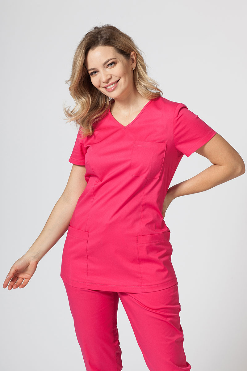 This fine-looking top gathered at the back subtly fits a woman’s body unlike many other medical tops. The neck is slightly curved to create a delicate, light and modern look. The fabric includes spandex to give you better freedom of movement. An additional chest pocket will give you enough room to carry all the necessary objects. The vivid colour range will make you stand out from the crowd. This is a high-quality product for the most demanding women!