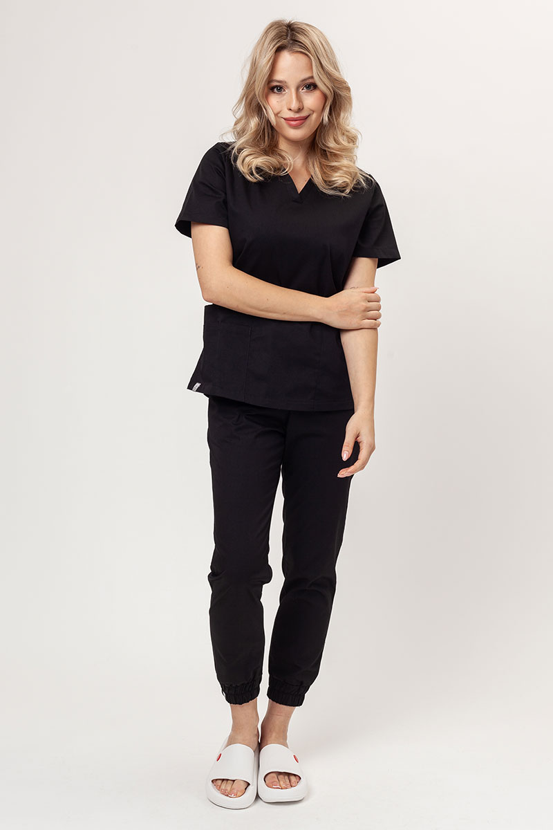 How long does it take you to get ready for work? With this Sunrise Uniforms scrub set, you will smash all records – and look smashing. This is thanks to the two comfortable items that make the perfect whole: a classic short-sleeved top and jogger trousers with a sporty touch. They have a lot in common: both look flattering, they have practical pockets and they are made of a durable, certified fabric, available in a wide range of colours. If you’re looking for an unconventional outfit – you’ve just found it.