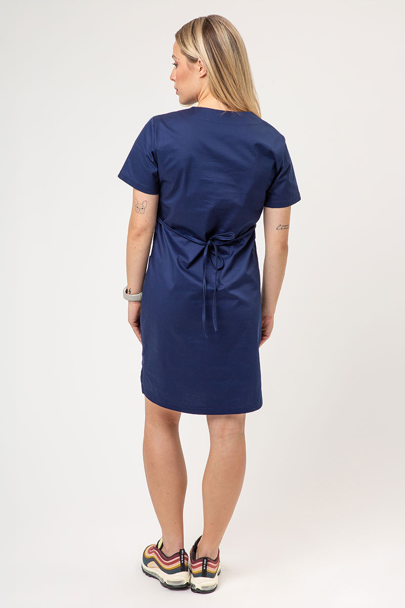 Comfort in motion, reliability in every detail – the Sunrise Uniforms Vital dress rises to the challenge even in the most demanding professional conditions. It features a classic yet distinctly feminine cut that transcends passing trends, with a V-neckline and a tie-back design that ensures a perfect fit to your figure. Two spacious pockets provide room for all your essential items, while side slits at the hem allow for greater freedom of movement. Made from elastic fabric with added spandex, this dress meets all the strict standards for medical apparel. The ability to wash it at 60°C makes it easy to care for on a daily basis – whether you're heading into a lighter shift or bracing for a busy day at work.