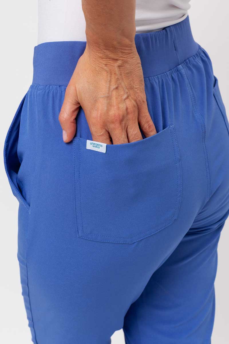 Can practicality be coupled with fashion? In the case of these medical trousers – yes it can! The Valiant model will charm you with its tapered legs finished with fashionable cuffs and satin-like fabric. These trousers are flexible and nice to touch at the same time. They won’t limit your movements and they have several spacious pockets for everyday objects you need at work. The trousers are made of recycled fabric which doesn’t wrinkle and dries quickly. And they look great in any situation. That’s a perfect choice for you!