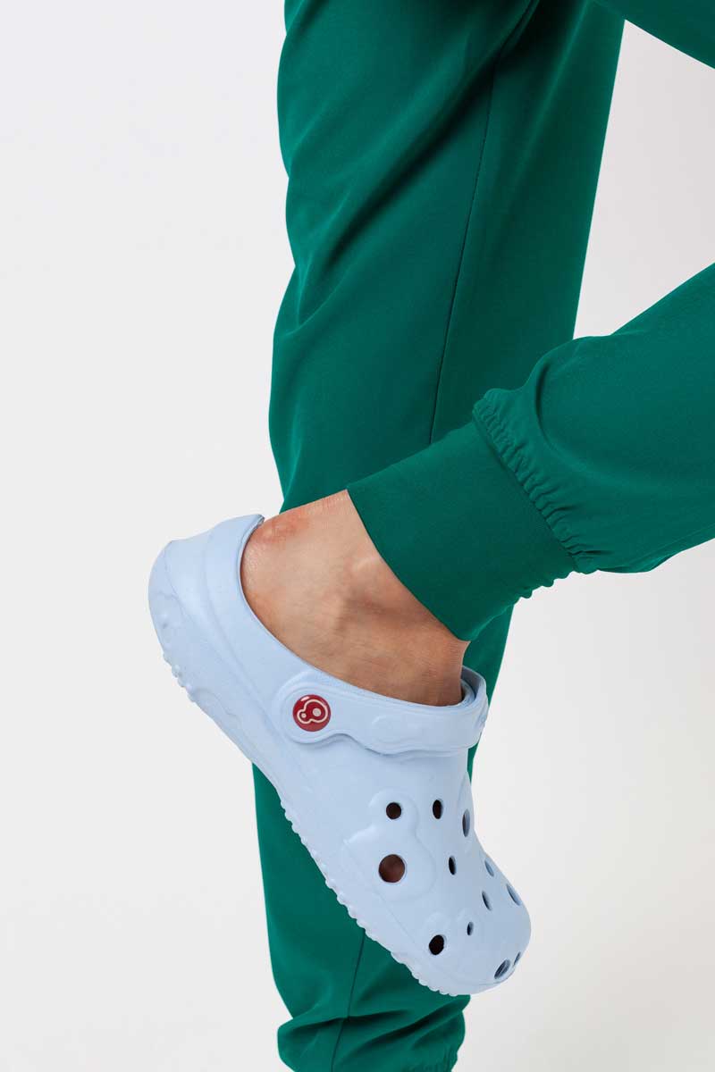 Can practicality be coupled with fashion? In the case of these medical trousers – yes it can! The Valiant model will charm you with its tapered legs finished with fashionable cuffs and satin-like fabric. These trousers are flexible and nice to touch at the same time. They won’t limit your movements and they have several spacious pockets for everyday objects you need at work. The trousers are made of recycled fabric which doesn’t wrinkle and dries quickly. And they look great in any situation. That’s a perfect choice for you!