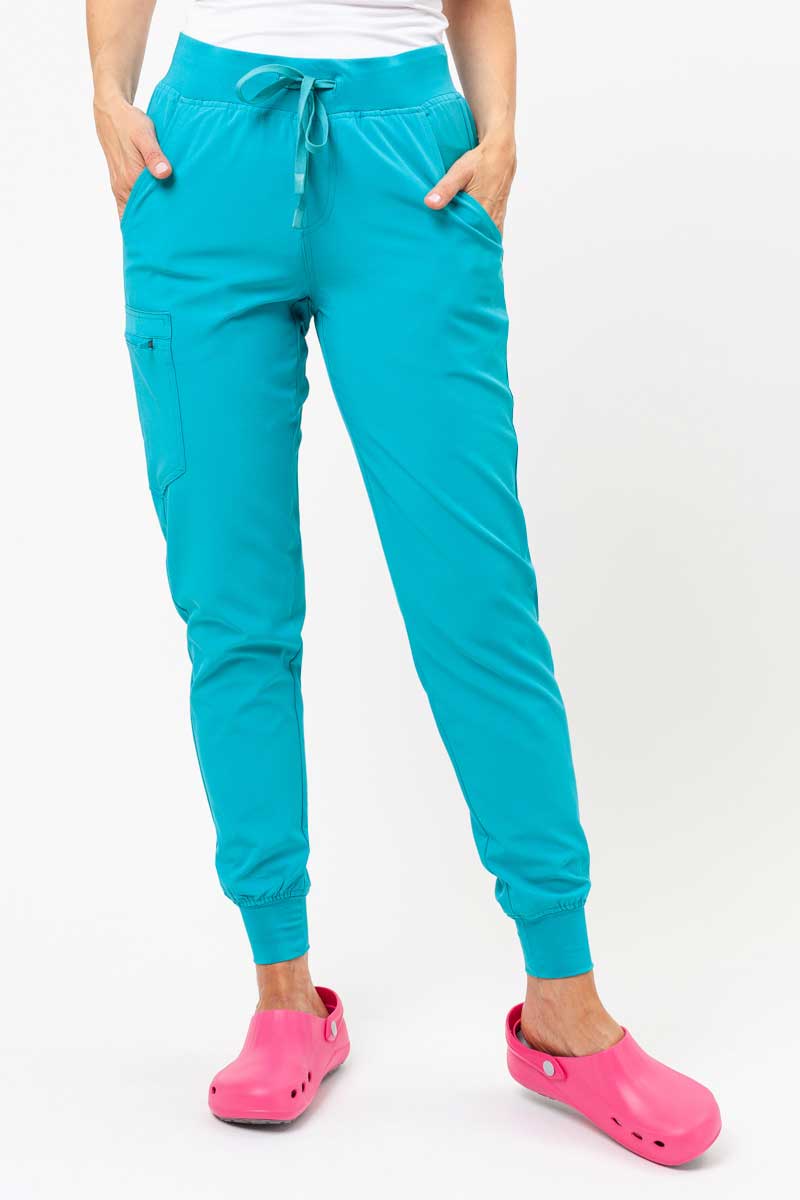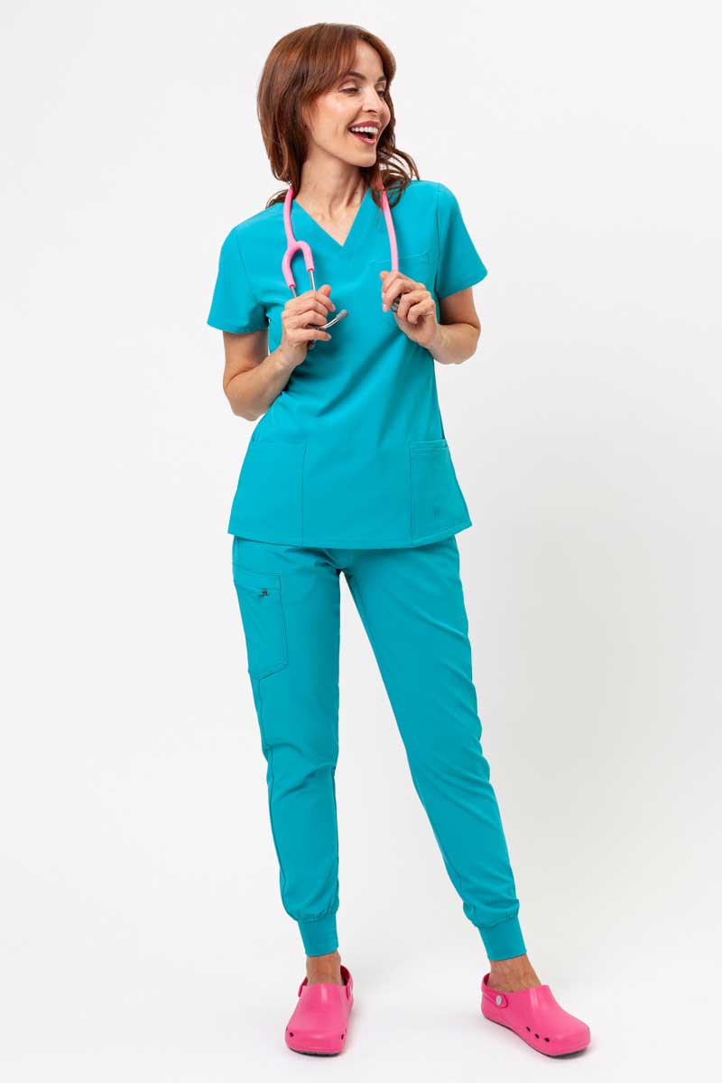 Can practicality be coupled with fashion? In the case of these medical trousers – yes it can! The Valiant model will charm you with its tapered legs finished with fashionable cuffs and satin-like fabric. These trousers are flexible and nice to touch at the same time. They won’t limit your movements and they have several spacious pockets for everyday objects you need at work. The trousers are made of recycled fabric which doesn’t wrinkle and dries quickly. And they look great in any situation. That’s a perfect choice for you!