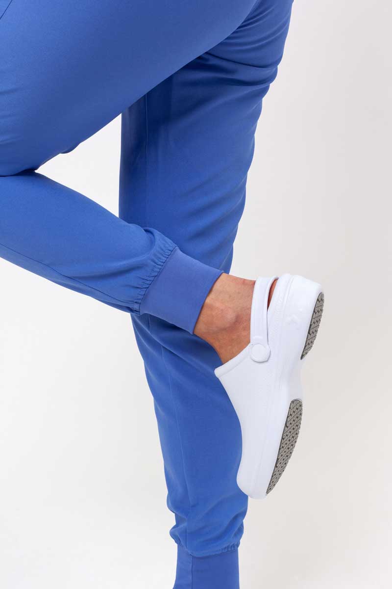 This perfectly-cut scrubs top and the fashionable trousers make a great couple. They will help you feel relaxed and comfortable during the long hours of work – and neat as well. If that’s what you’re looking for, the Valiant scrubs set is for you. It consists of jogger trousers and a V-neck top with stylish waist-cut and slightly widened bottom. The scrubs set is made of gentle, satin-like recycled fabric, which is wrinkle-resistant, moisture-wicking and quick-drying. Thanks to the added spandex, it will ideally adapt to your body and movements to ensure full comfort in any situation. The Valiant scrubs set is available in a number of deep colours.
