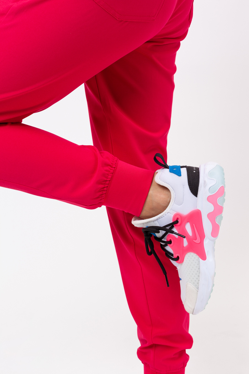 This perfectly-cut scrubs top and the fashionable trousers make a great couple. They will help you feel relaxed and comfortable during the long hours of work – and neat as well. If that’s what you’re looking for, the Valiant scrubs set is for you. It consists of jogger trousers and a V-neck top with stylish waist-cut and slightly widened bottom. The scrubs set is made of gentle, satin-like recycled fabric, which is wrinkle-resistant, moisture-wicking and quick-drying. Thanks to the added spandex, it will ideally adapt to your body and movements to ensure full comfort in any situation. The Valiant scrubs set is available in a number of deep colours.